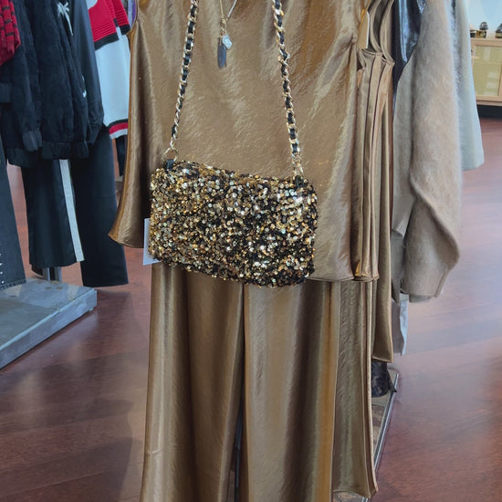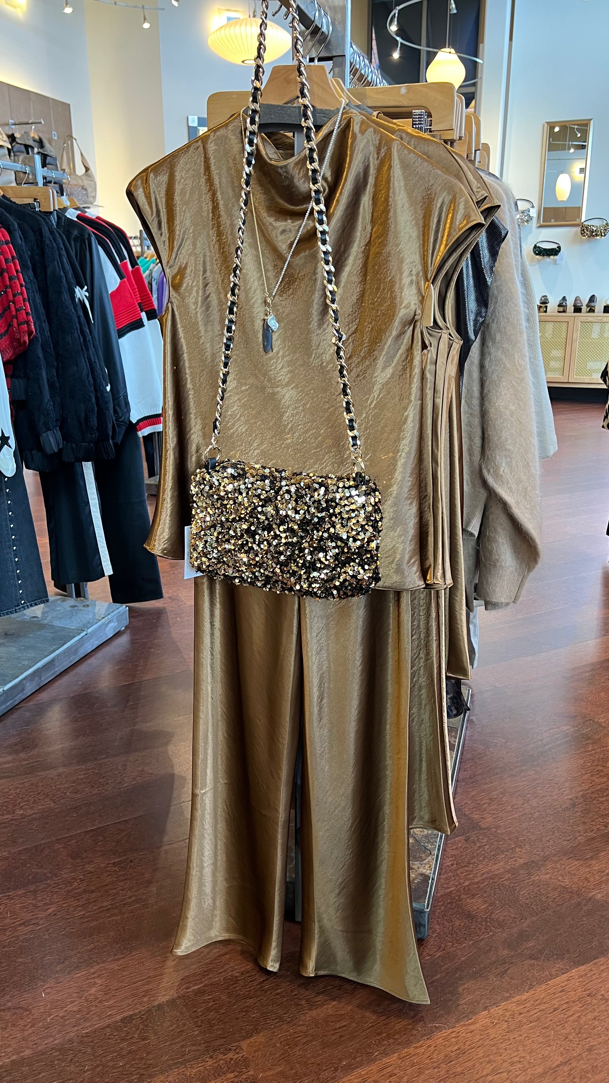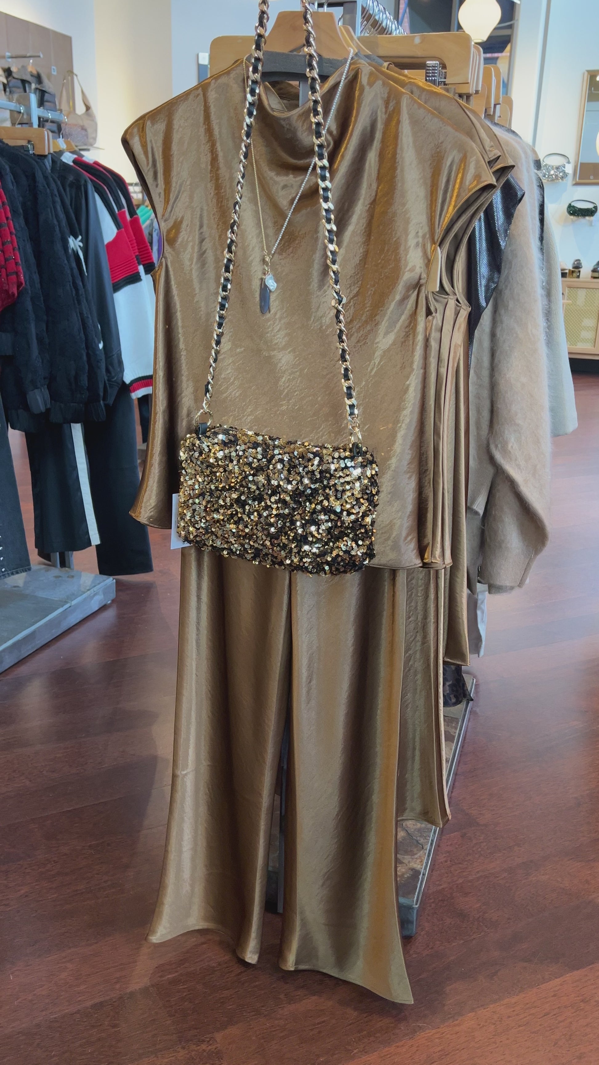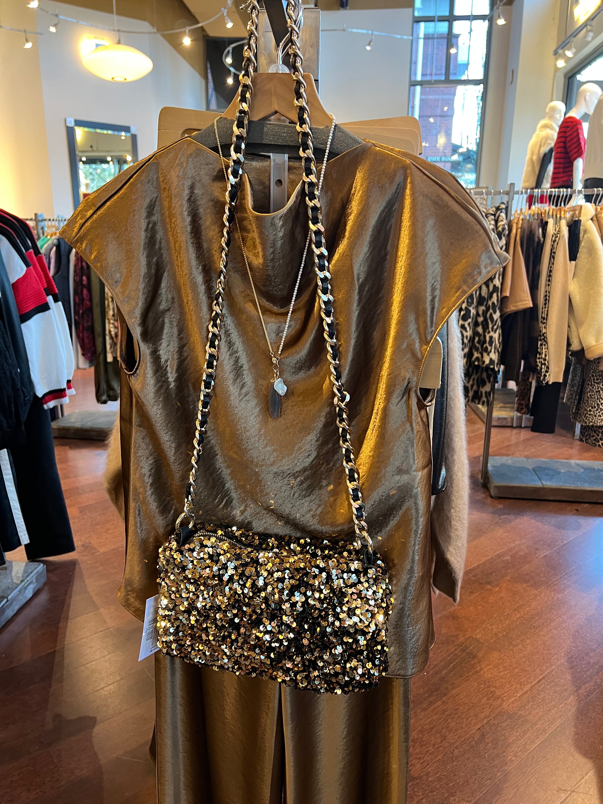 A little sparkle goes a long way. This embellished baguette bag adds instant glam to any outfit with its structured shape and eye-catching shine. Finished with a statement chain strap, it’s the perfect piece for holiday parties, nights out, or adding something fun to your everyday look.