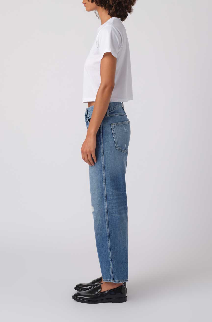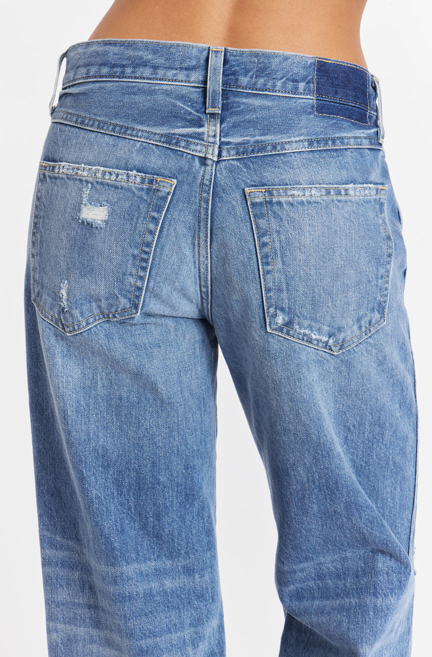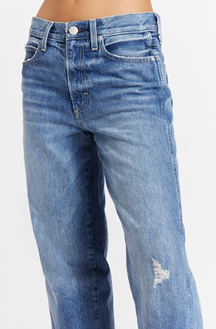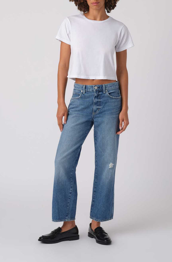 Meet your new go‑to denim: a relaxed, mid‑rise fit that sits low on the hips and finishes in a cropped, wide straight leg. Thoughtful distressing adds character, while the zip fly keeps things classic and easy.