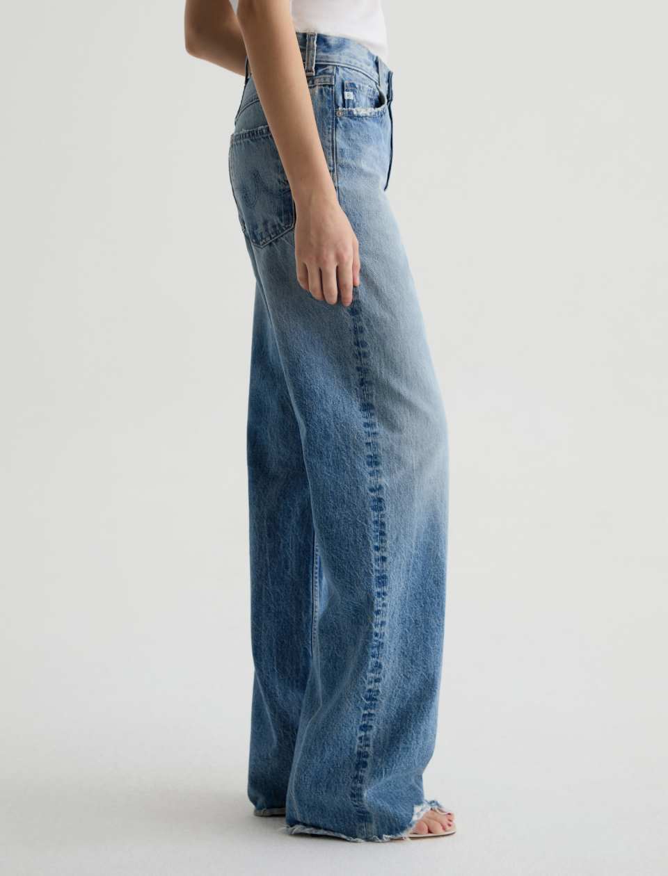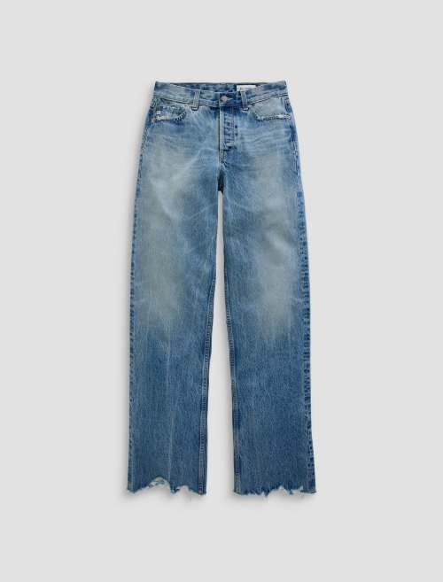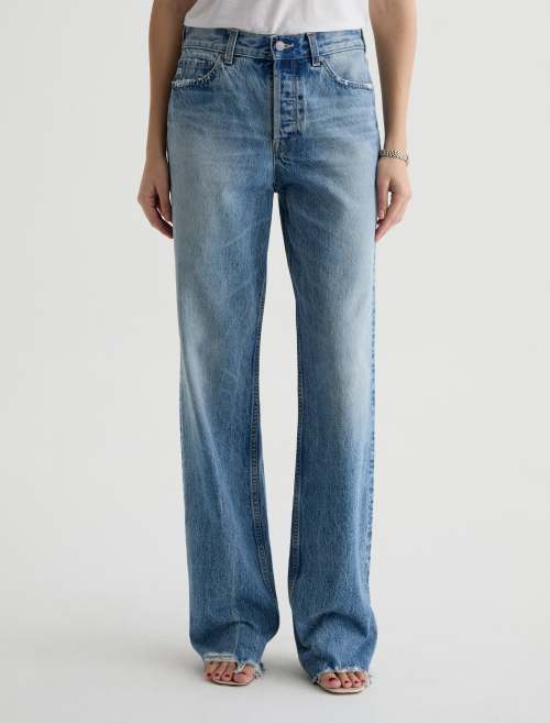 Faded medium blue wash with whiskering and distressing