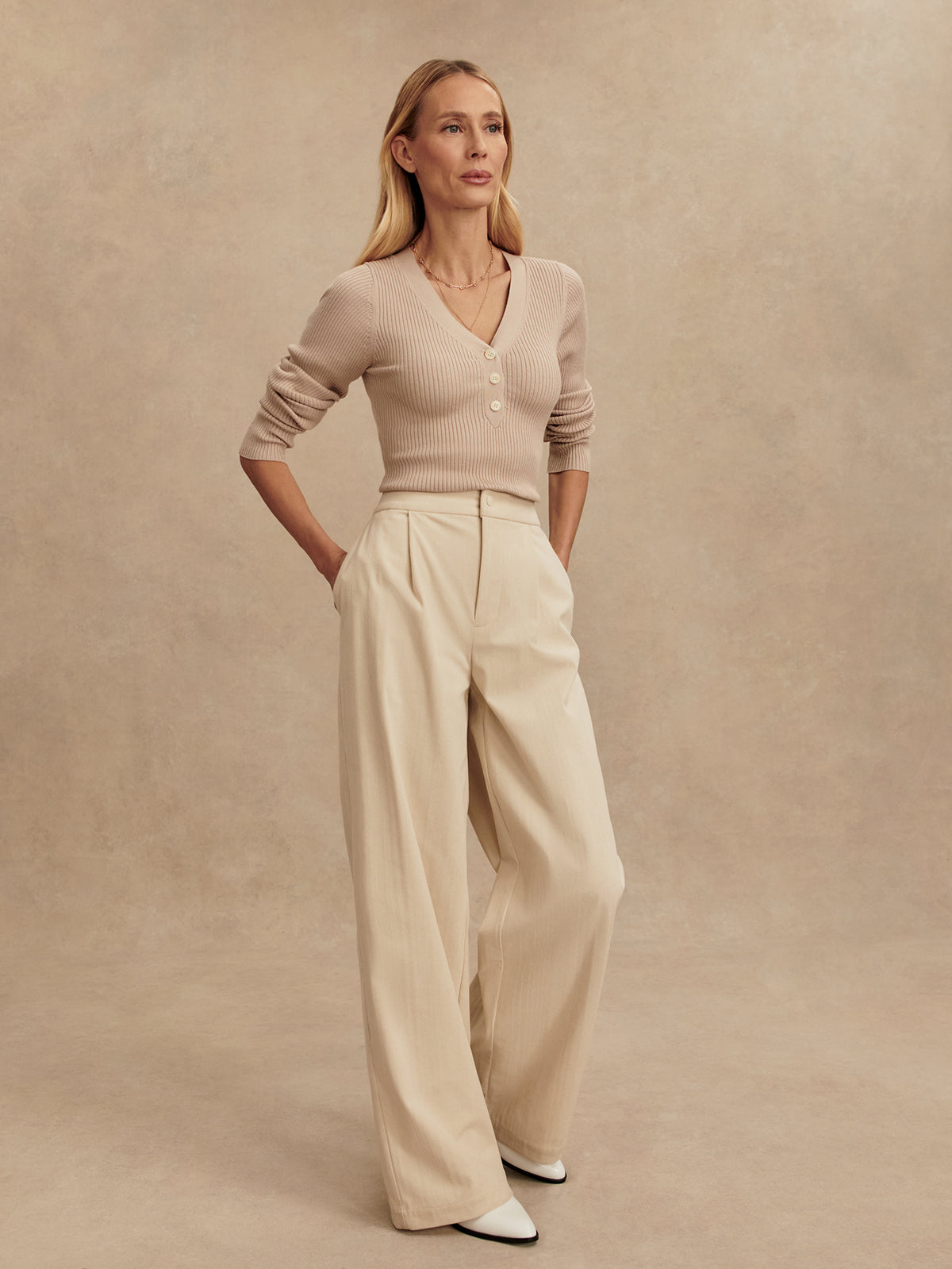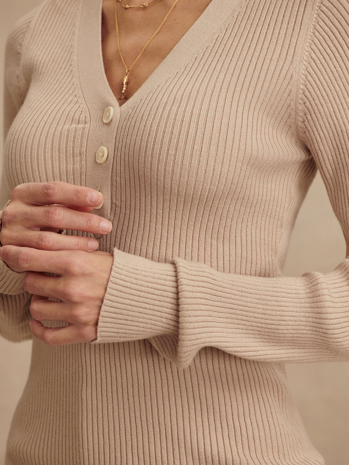 A slim-fitting fine knit designed for easy layering. Soft viscose yarn and fine-gauge stitching give Blanca a lightweight, comfortable feel that works just as well under a gilet as it does on its own. The V-neckline, placket, and button front add an elegant touch to this everyday staple.