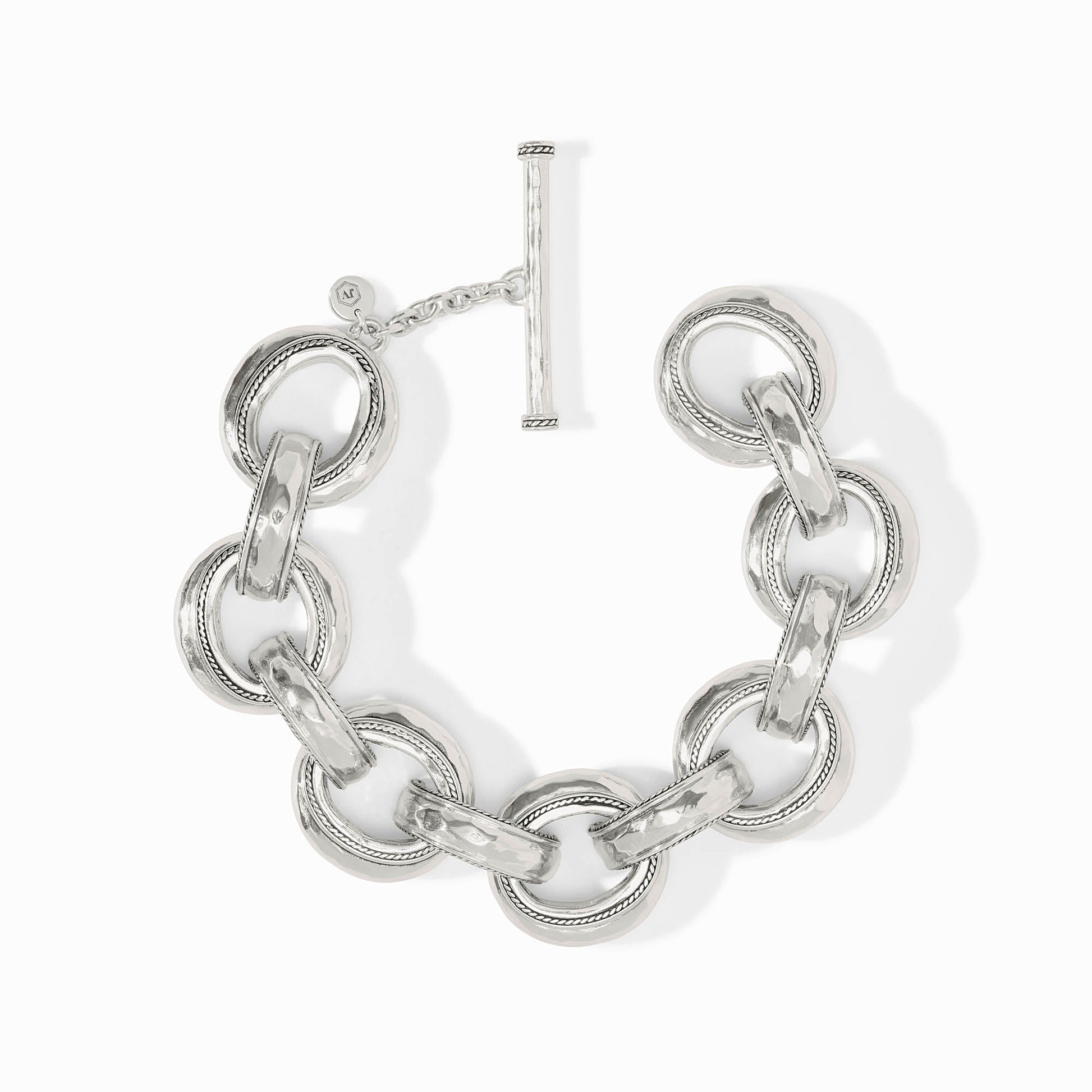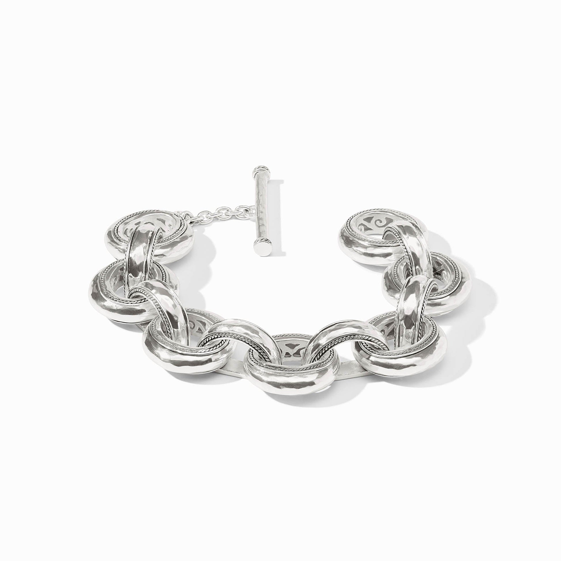 A statement piece that goes with everything. The Cannes Demi Link Bracelet by Julie Vos features bold, sculptural links plated in pure silver for a polished, tarnish-free shine. Finished with the designer’s signature toggle closure, it’s equal parts strength and sophistication—perfect for stacking or shining solo.