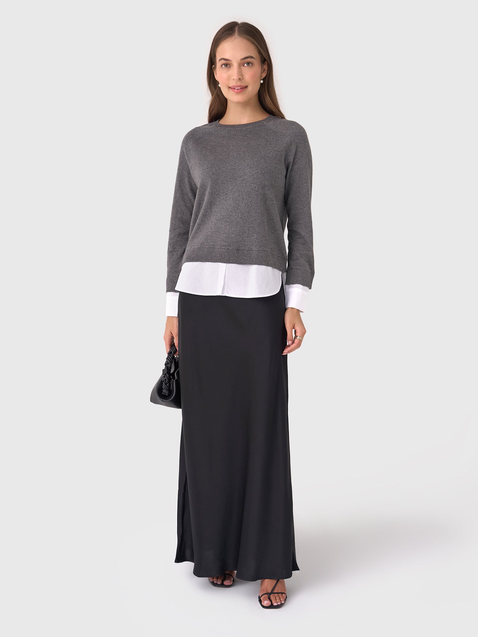 A timeless crewneck sweater made from soft cotton with a built-in shirting underlayer for that clean, layered look—without the bulk. Polished, comfortable, and easy to style, it pulls any outfit together in seconds.