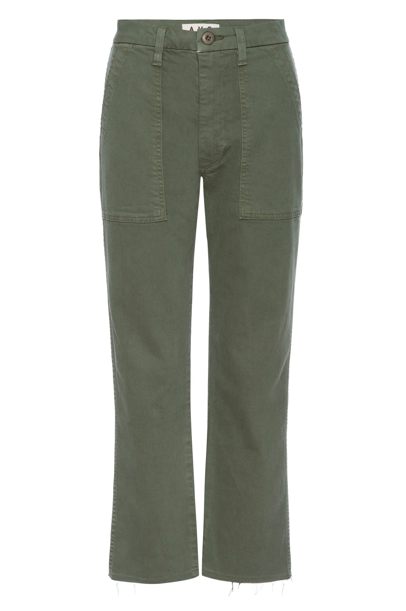 A slightly relaxed, cropped straight pant with trouser styling and built‑in ease. Designed to sit low on the hips, it features a single button and zip fly closure plus front and back army patch pockets—true to its name, it’s effortless to wear and style.