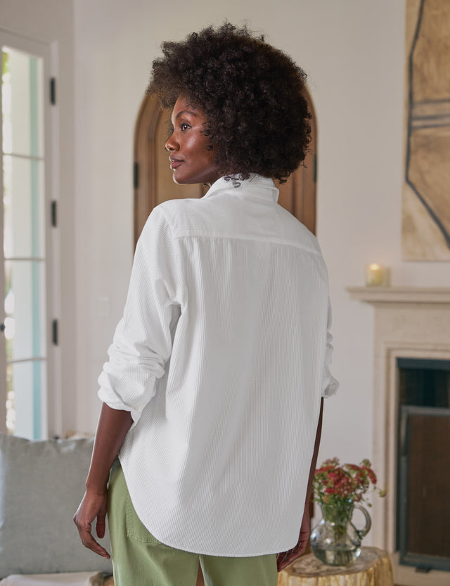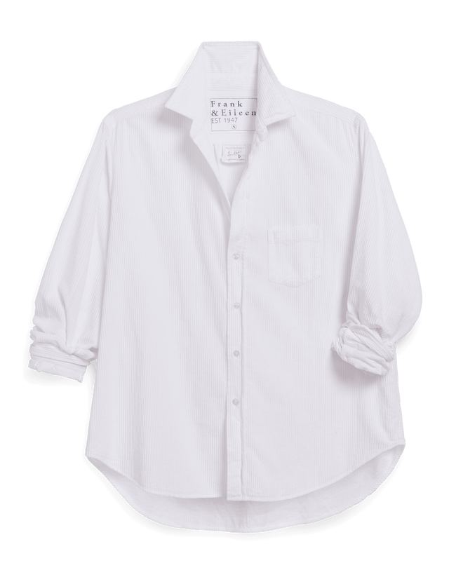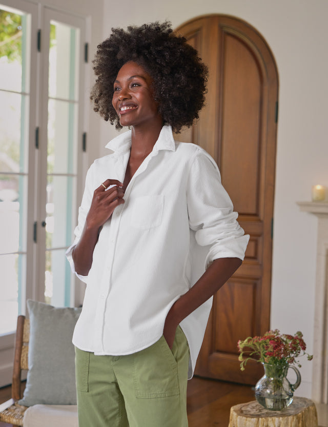 The Eileen Italian Corduroy Shirt combines Frank & Eileen’s signature relaxed fit with the soft texture of garment-dyed Italian corduroy. Designed to flatter every figure, it features a generously cut silhouette, bust-flattering button placement, and a hand-distressed shirttail hem long enough to cover the bum. This wide-wale corduroy offers a luxurious, lived-in feel with timeless appeal.
