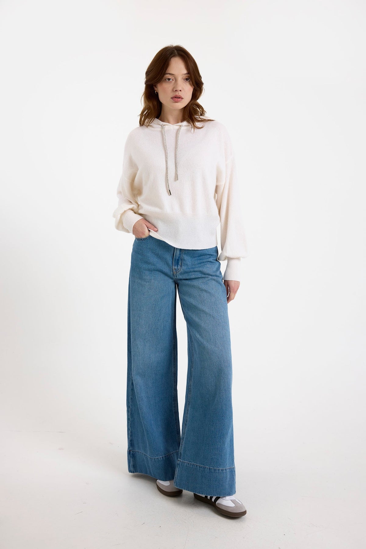 Elevate your everyday look with our newest cashmere essential. Featuring a relaxed fit and playful rhinestone drawstrings, this top effortlessly combines luxurious comfort with a modern edge. Crafted from 100% Grade-A Mongolian cashmere using clean, non-toxic dyes, it's as kind to your skin—and the environment—as it is stylish.