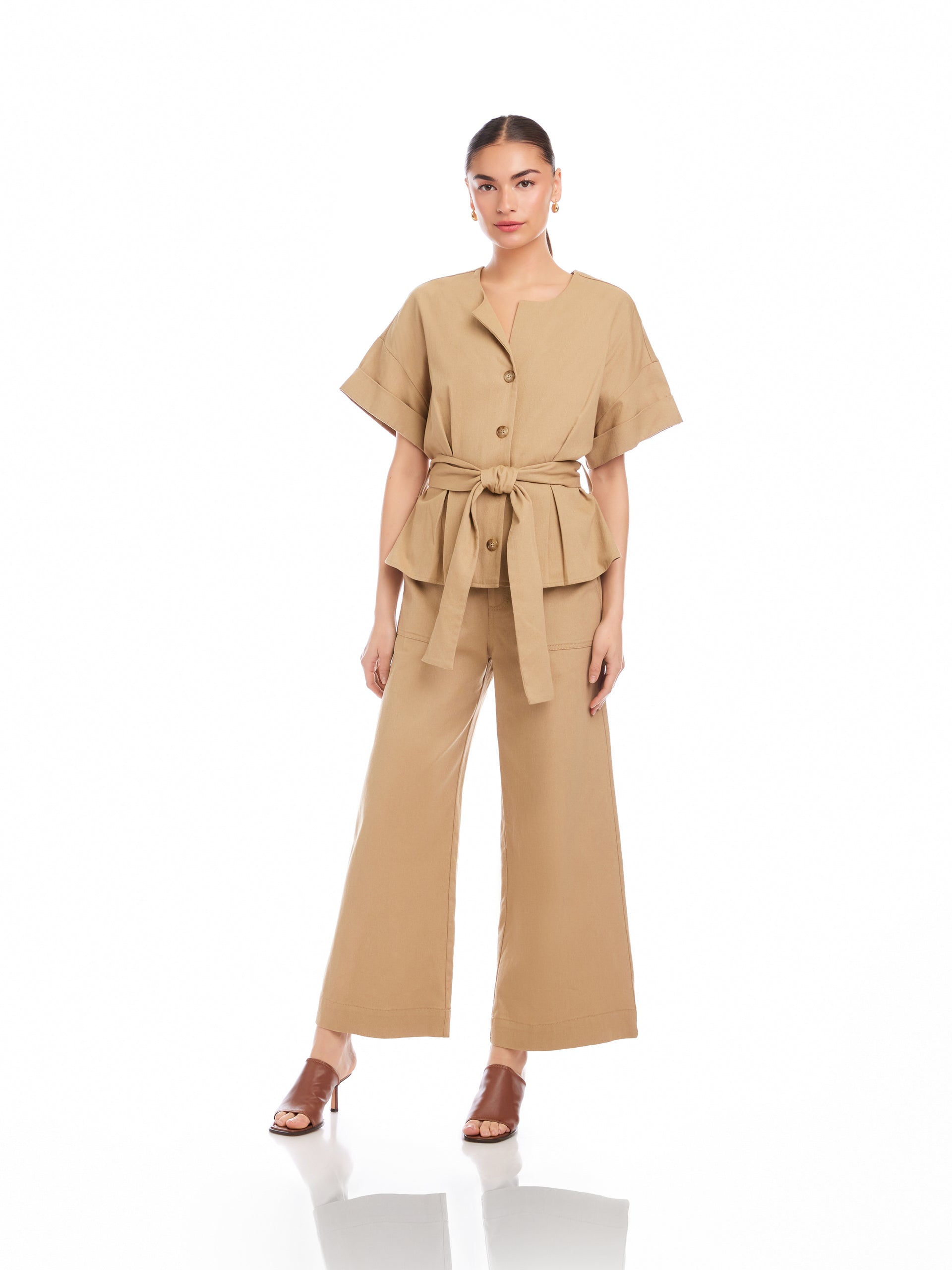 An elastic back waist with subtle gathering offers comfort and flexibility, while the adjustable belt allows you to customize the fit. The relaxed silhouette keeps it easy, polished, and versatile for everyday wear.