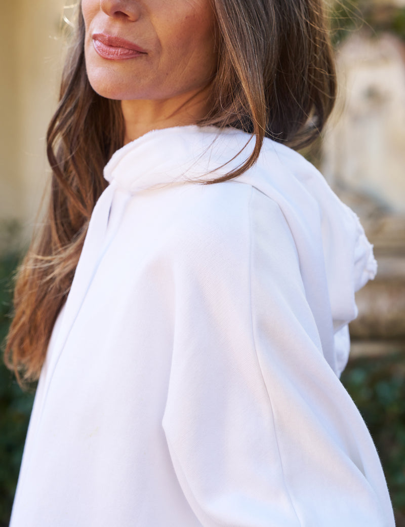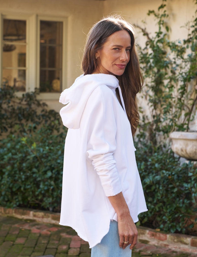 Kane is the perfect pullover with a roomy fit and functional hood, designed to keep you cozy and stylish. The feminine drape and comfy continuous seam sleeves make this piece flattering for busy days, whether you're running to the gym, brunch, or just walking the dog.