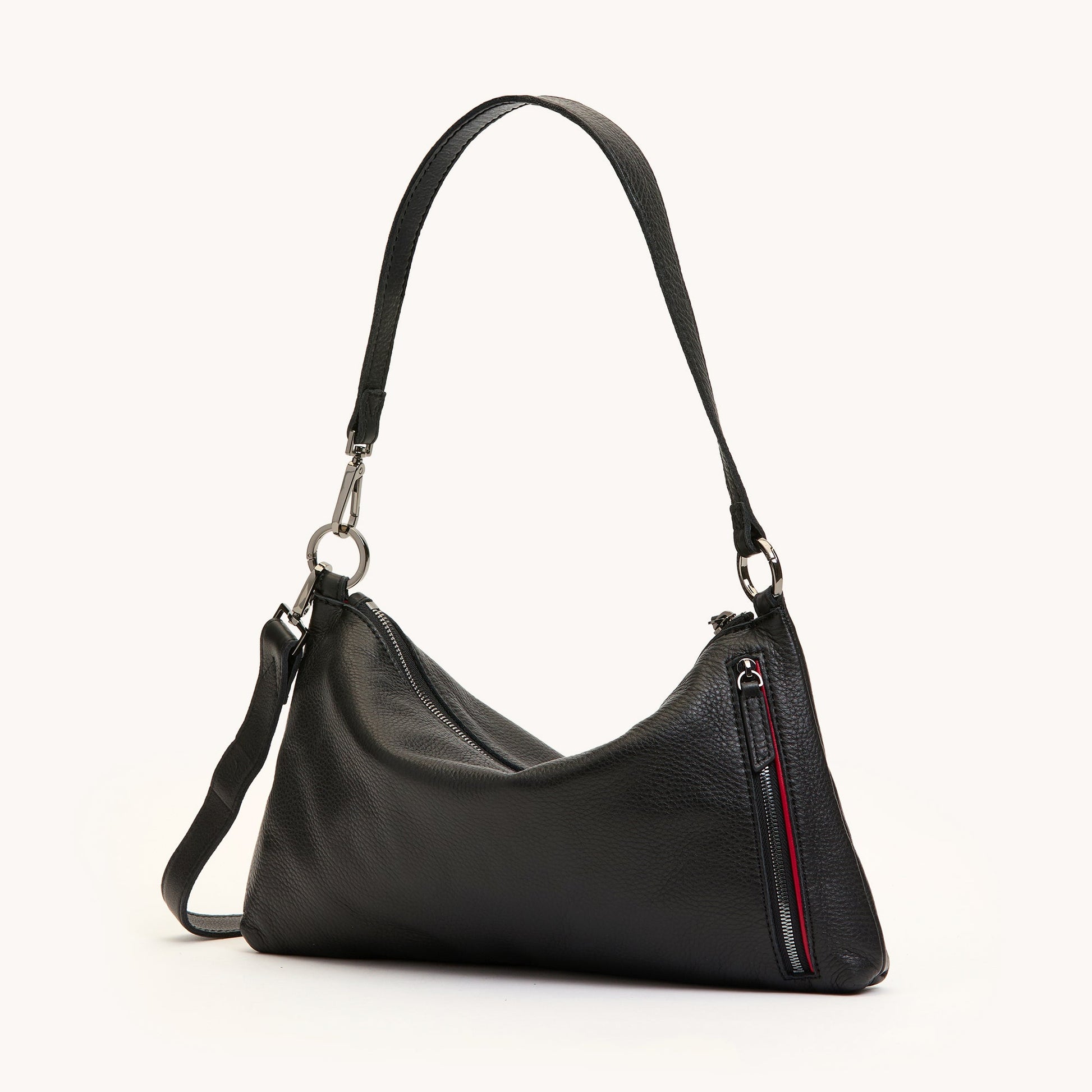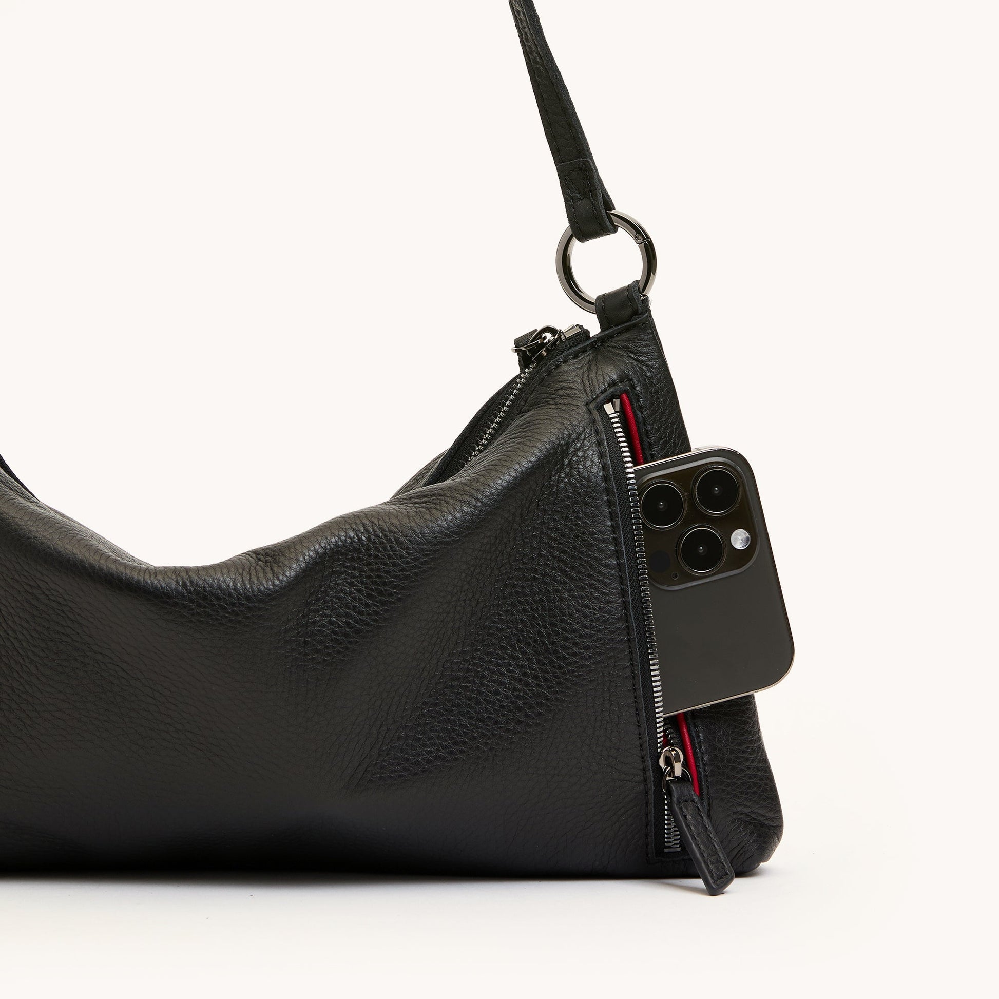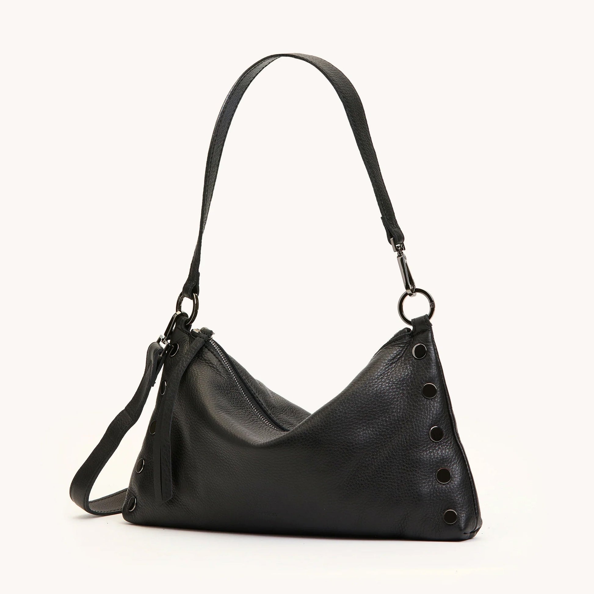 Crafted with classic black pebbled leather and finished with gunmetal hardware, this style blends everyday ease with Hammitt’s signature elevated details.