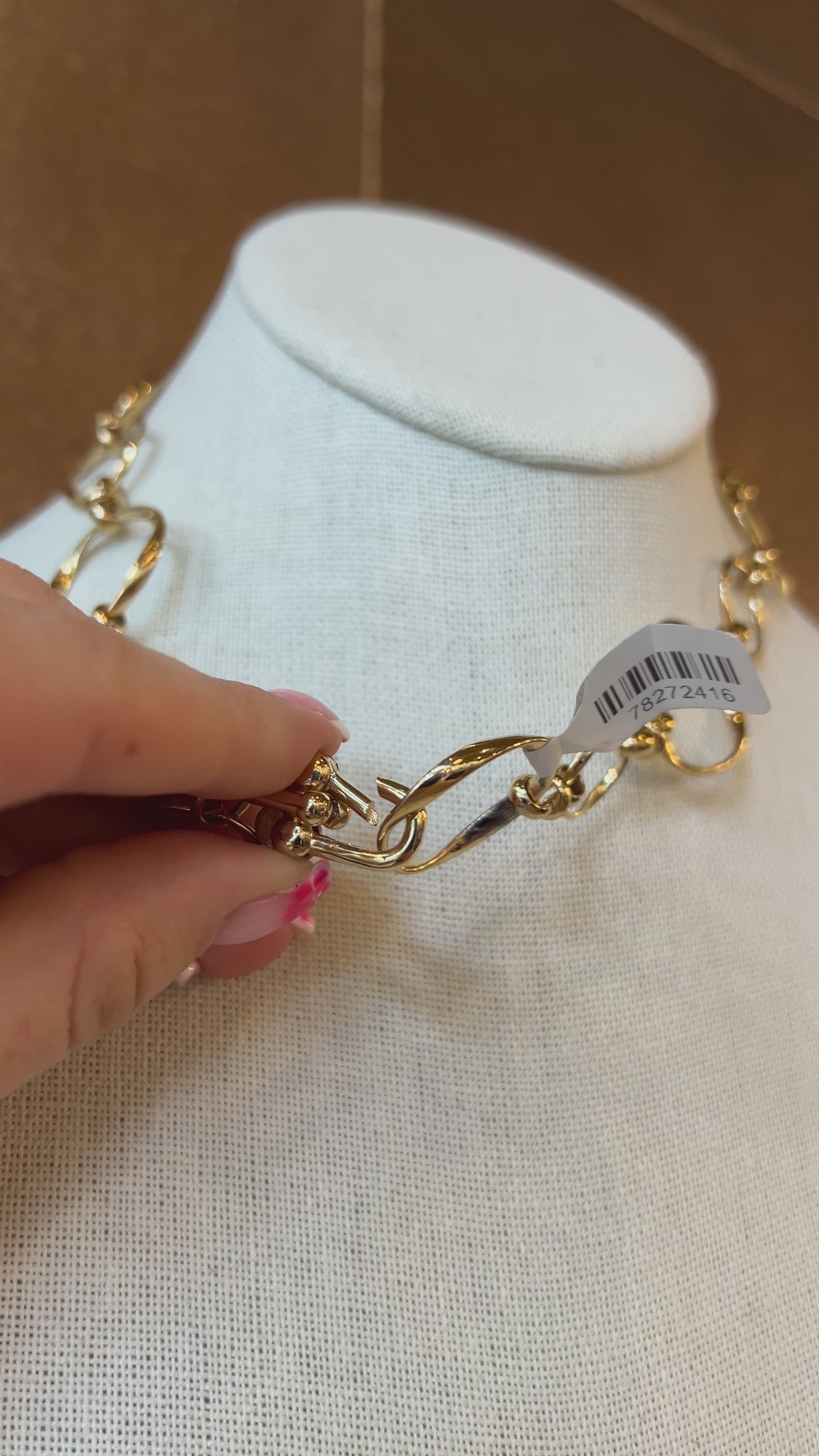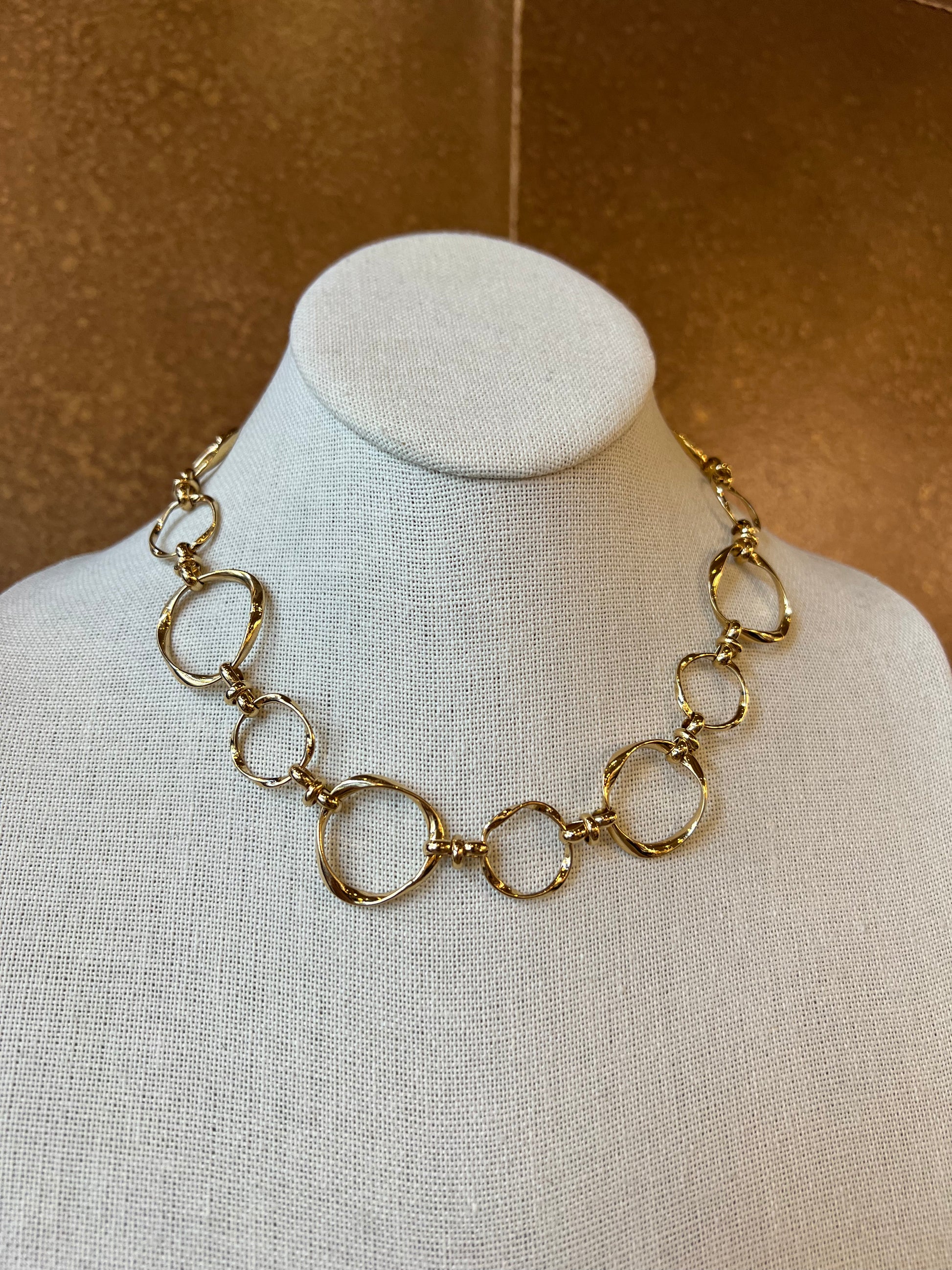 Introducing the Loop Necklace by Lisa Smith—a sophisticated piece featuring textured, interlocking loops in varying sizes. Crafted from polished gold-plated metal, this choker-length necklace sits elegantly at the collarbone, adding a modern sculptural touch to any outfit. Secure it with a lobster-claw clasp for effortless wear.