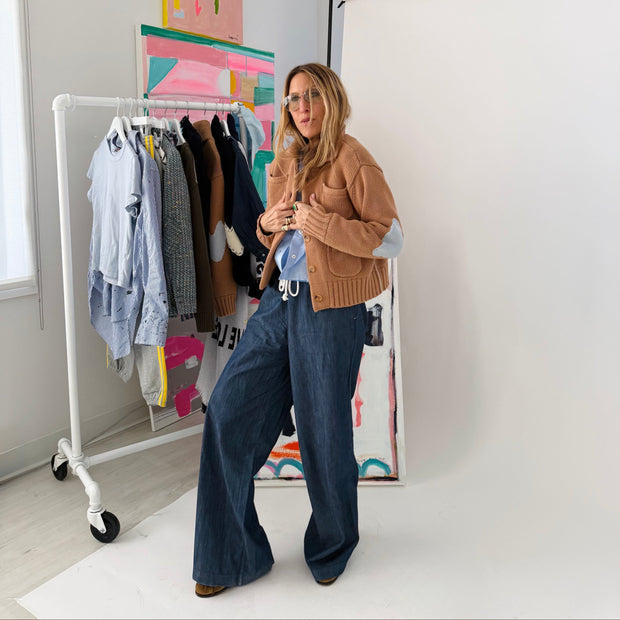 A knit jacket you will reach for on repeat. The Love Bomber is crafted from soft cotton knit and finished with contrast Imperfect Heart elbow patches for a subtle signature touch.