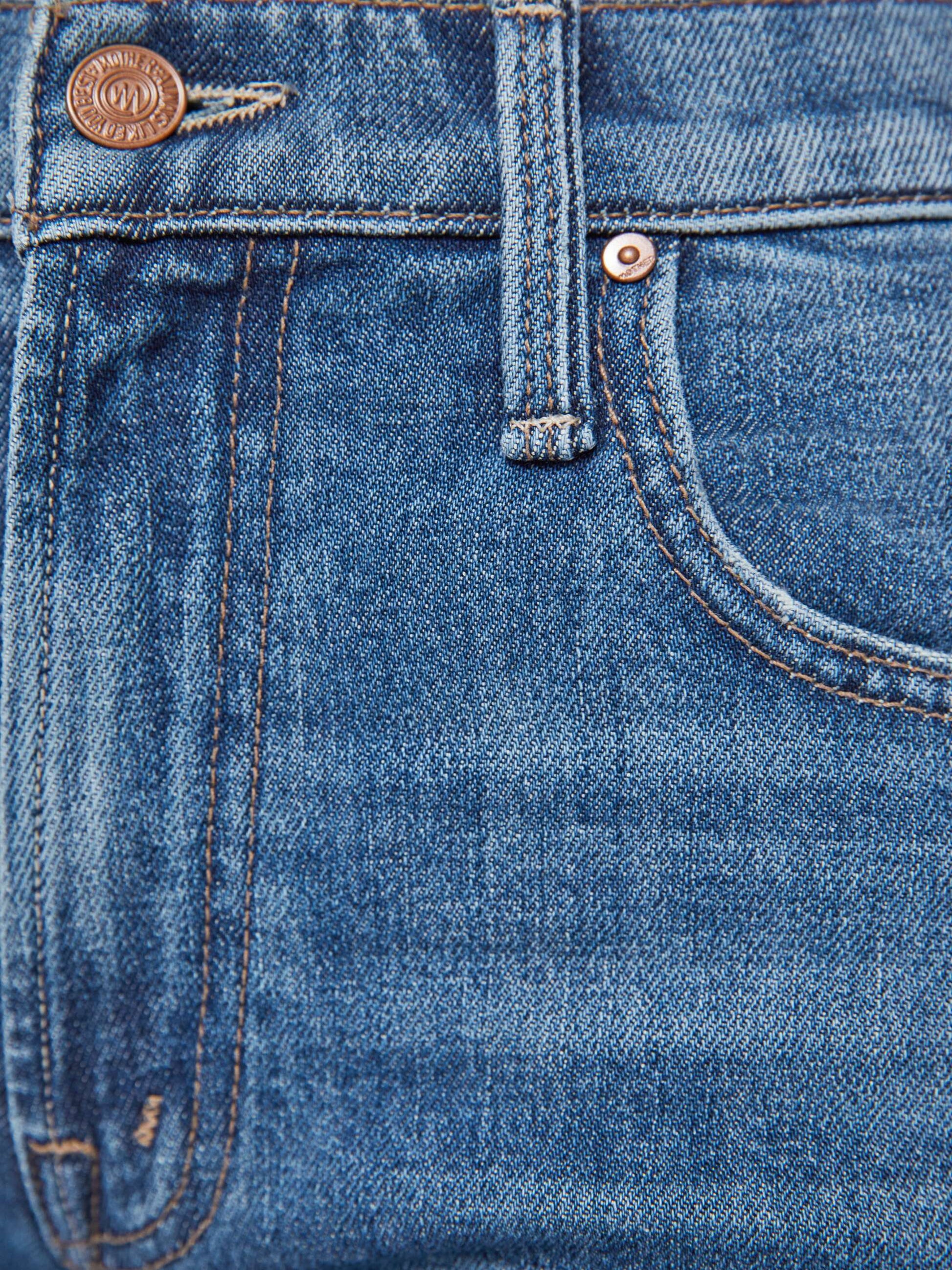 Shake it up. A mid-rise jean designed with a wide straight leg, clean ankle-length inseam, and classic zip fly closure. Crafted from semi-rigid denim, this style features a mid-blue wash with subtle whiskering and fading at the knee for that perfectly lived-in look. These jeans are structured yet flattering, softening over time for a custom fit.