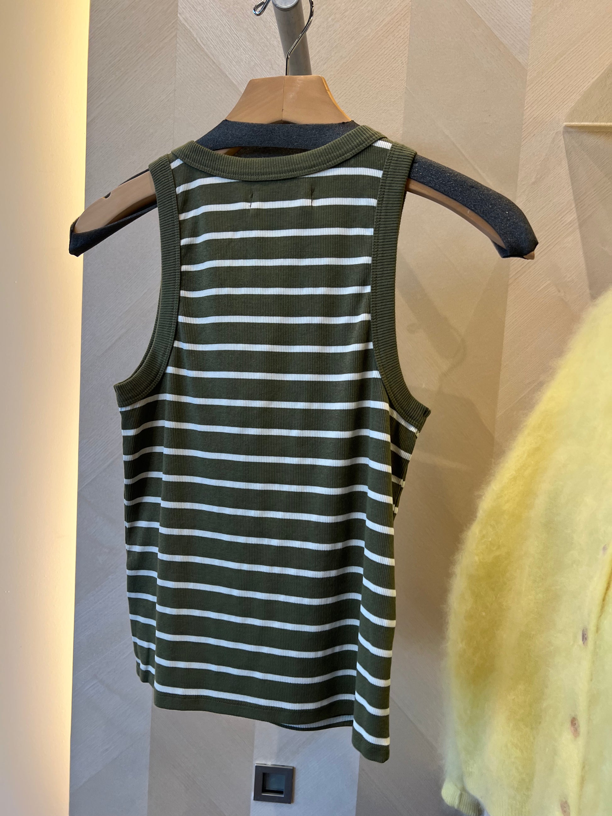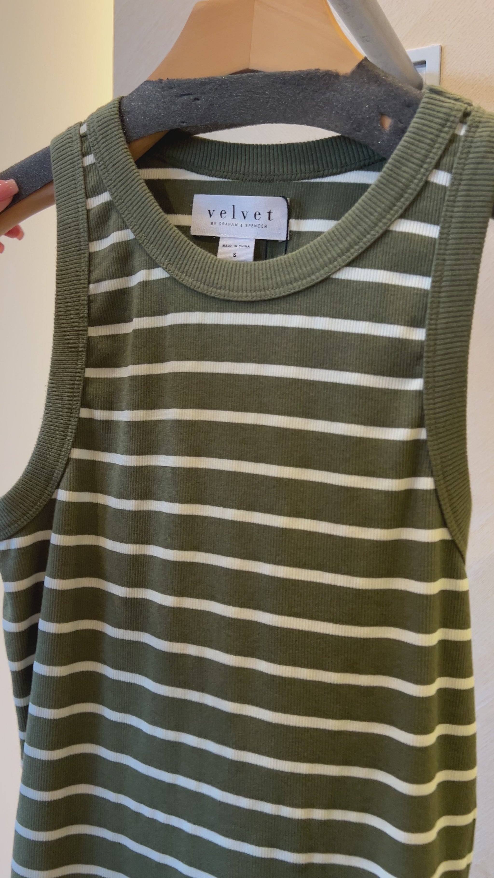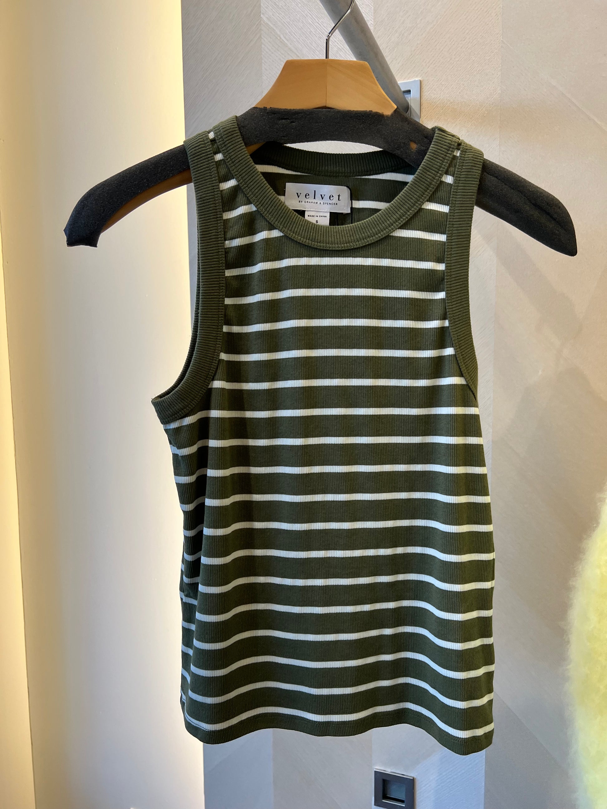The Morie Tank is an effortless essential with a fresh, modern feel. Designed in a soft rib knit with a flattering fitted silhouette, this sleeveless style is finished in a versatile Kale stripe that feels both grounded and elevated.