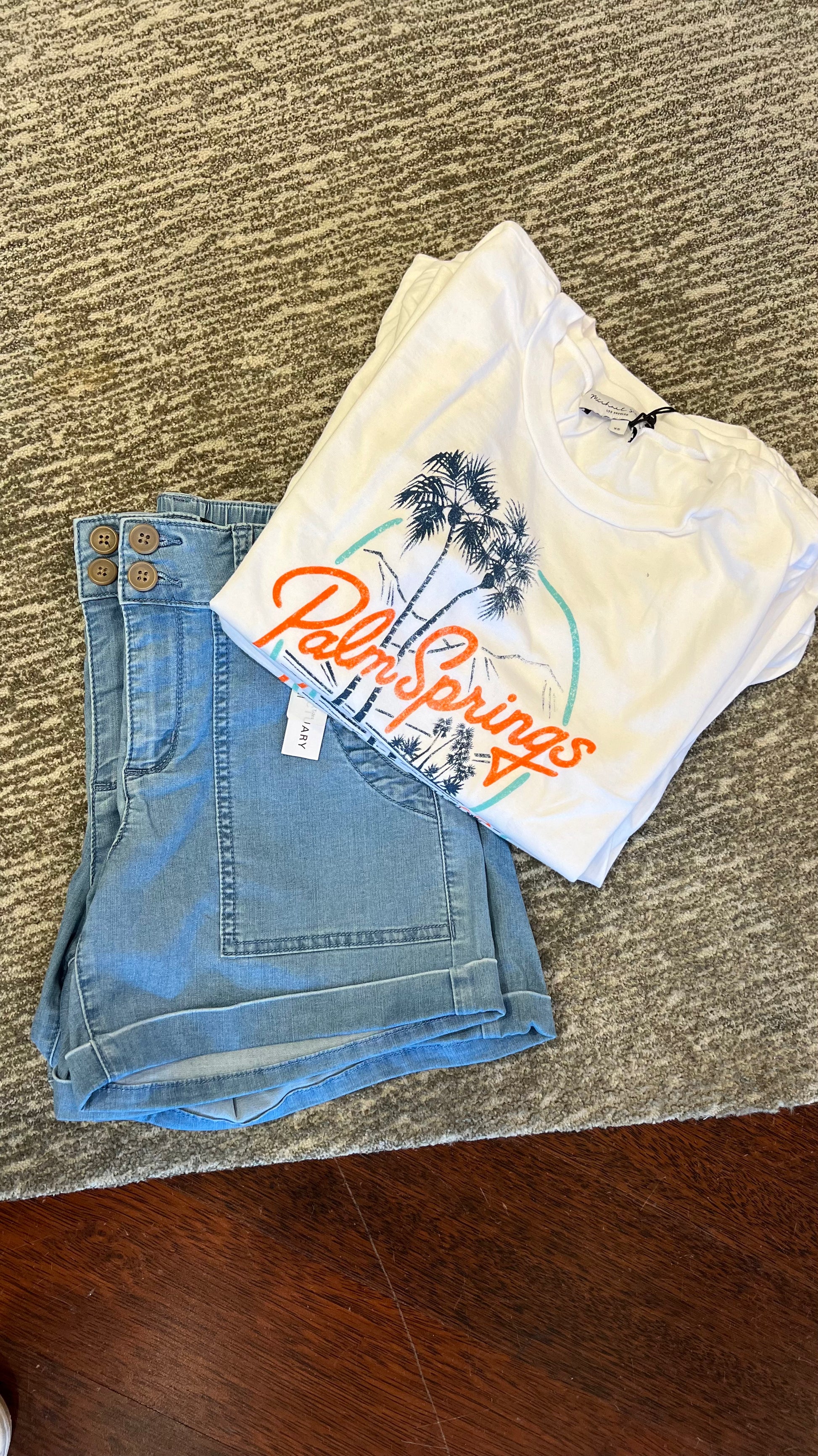 The Palm Springs Tee by Michael Stars captures retro desert vibes with a vibrant “Palm Springs” script in neon orange gradient over a sunset-tinted palm tree graphic. Crafted in soft cotton jersey, it offers a relaxed crew neckline and short sleeves for easy styling
