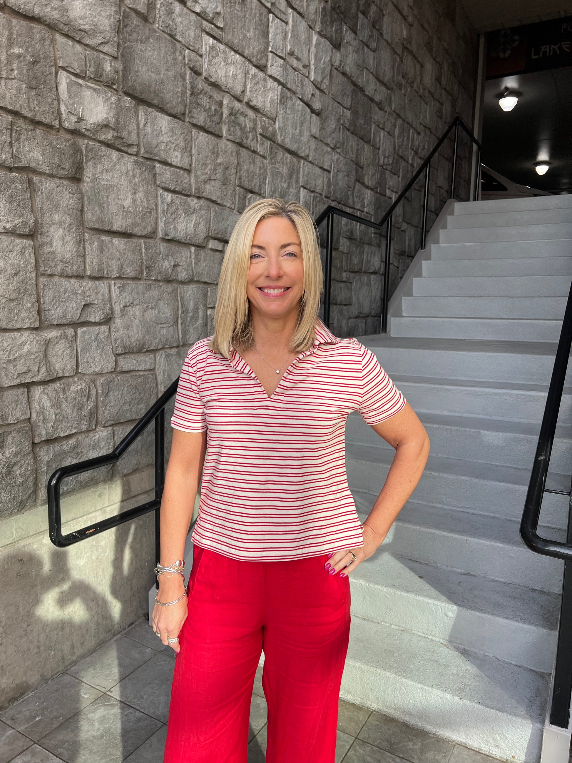 A classic striped top with a fresh, easy feel. The Perrin Collared Top features a flattering collared neckline and a relaxed fit that feels polished without being stiff.