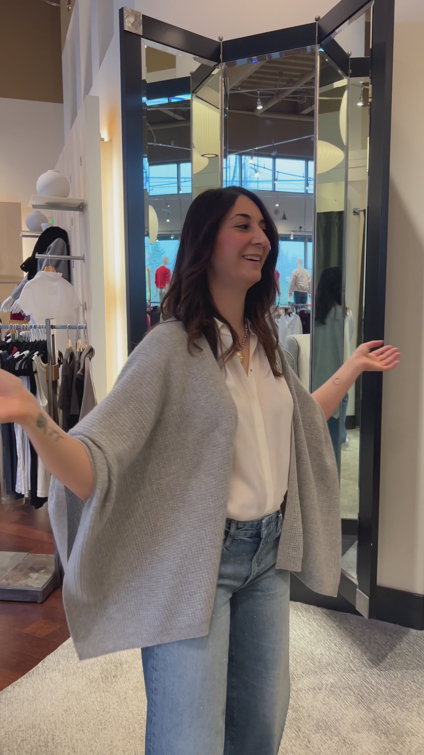 This sweater jacket feels luxurious and I got it on sale. Definitely runs large, size 1 size down. Green color is elegant and goes with everything.