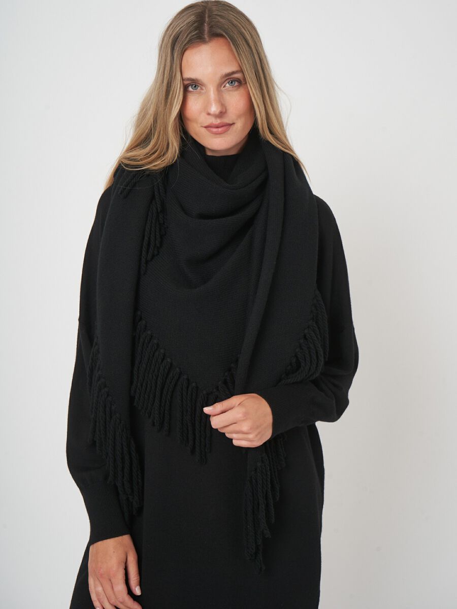 This chunky triangular scarf is crafted from an OCS-certified organic cashmere and wool blend, offering softness and warmth you’ll want all season. Finished with braided trim and fringed ends for added texture, it’s the perfect wrap to style draped, tied, or casually thrown over your shoulders.