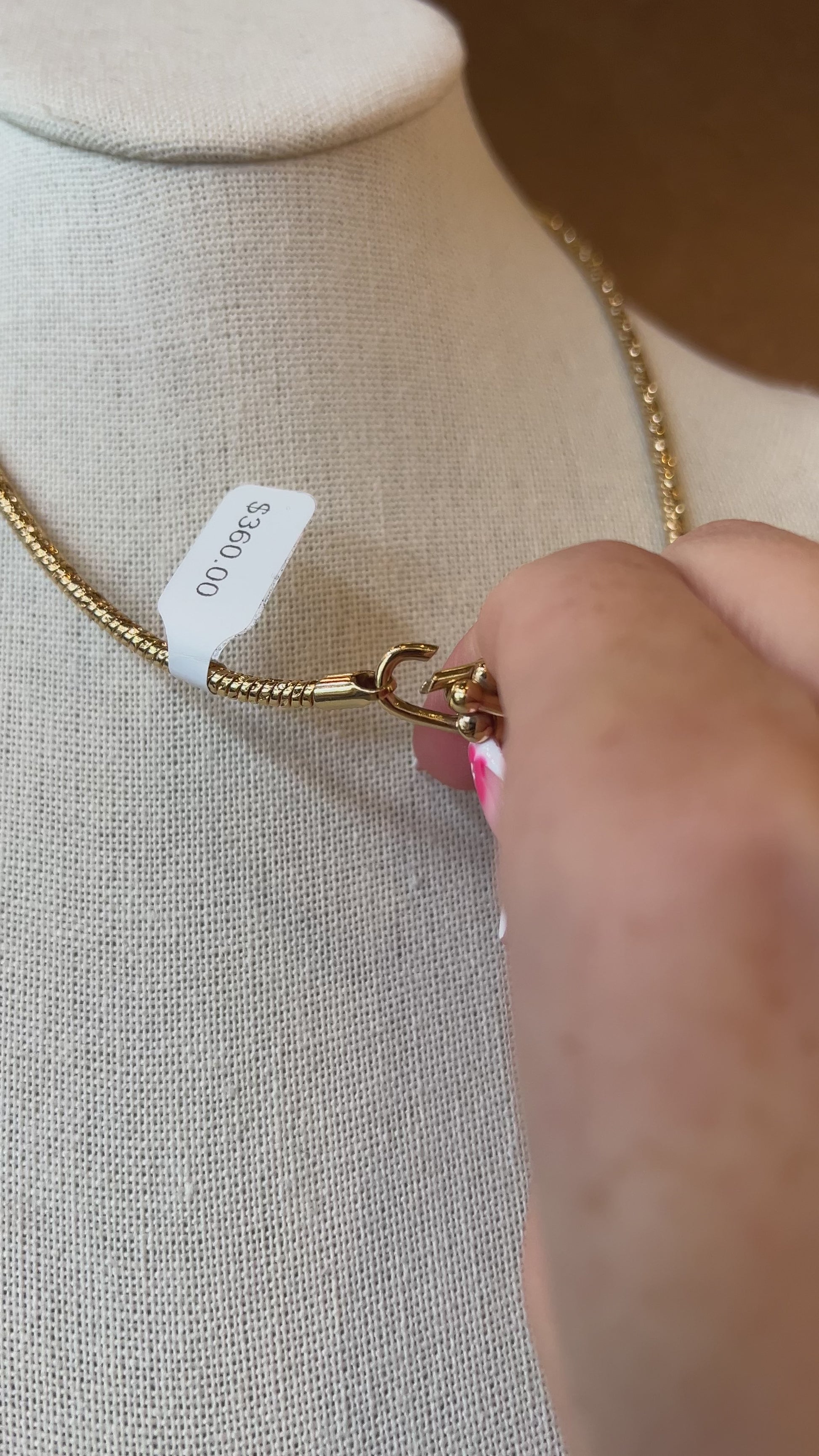 This sleek yet bold necklace by Lisa Smith features a thick, rounded chain with intricate texture details that add a touch of elegance to any look. Perfect for elevating both casual and dressy outfits, it’s the kind of piece that makes a statement without being over the top.
