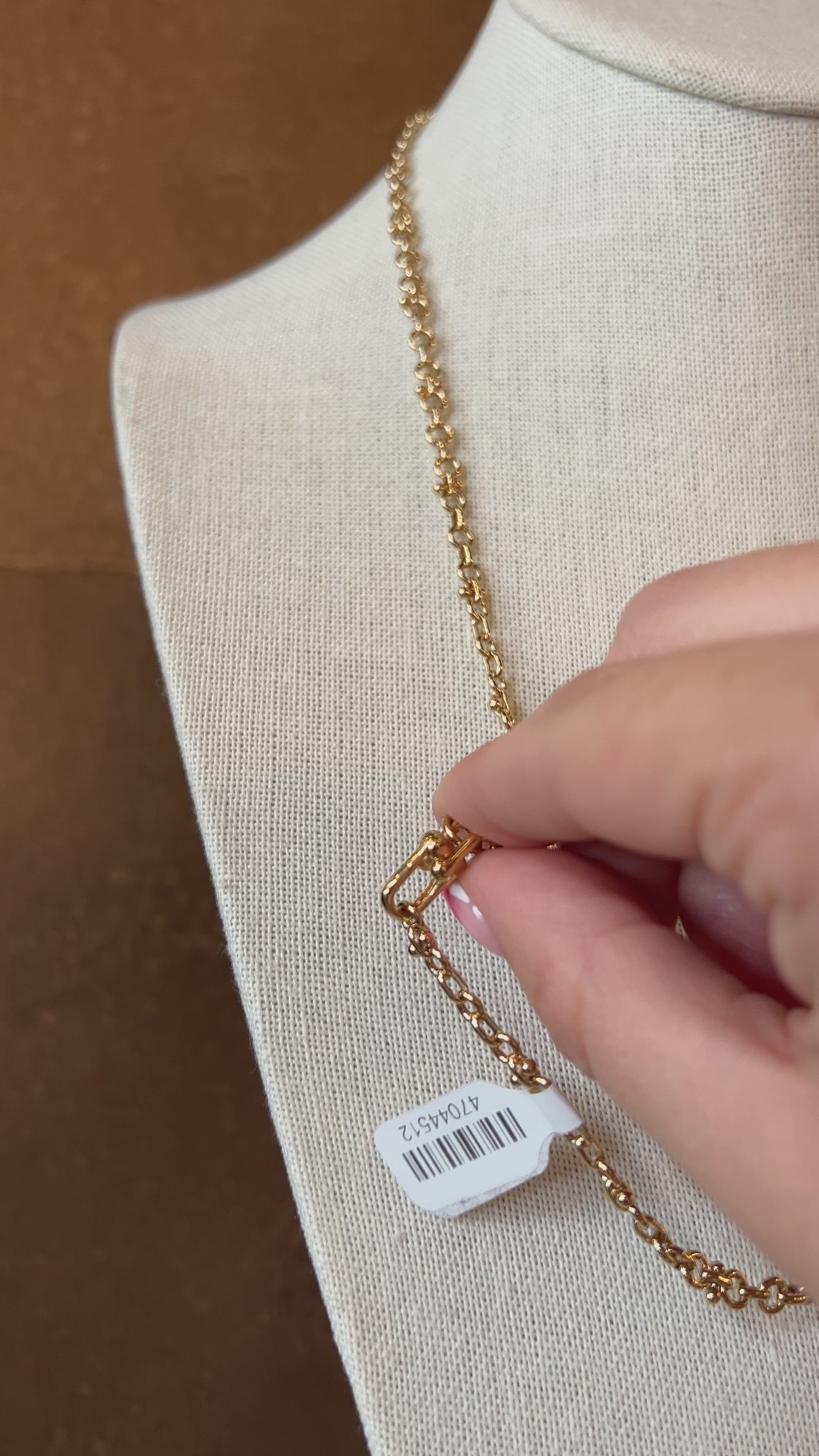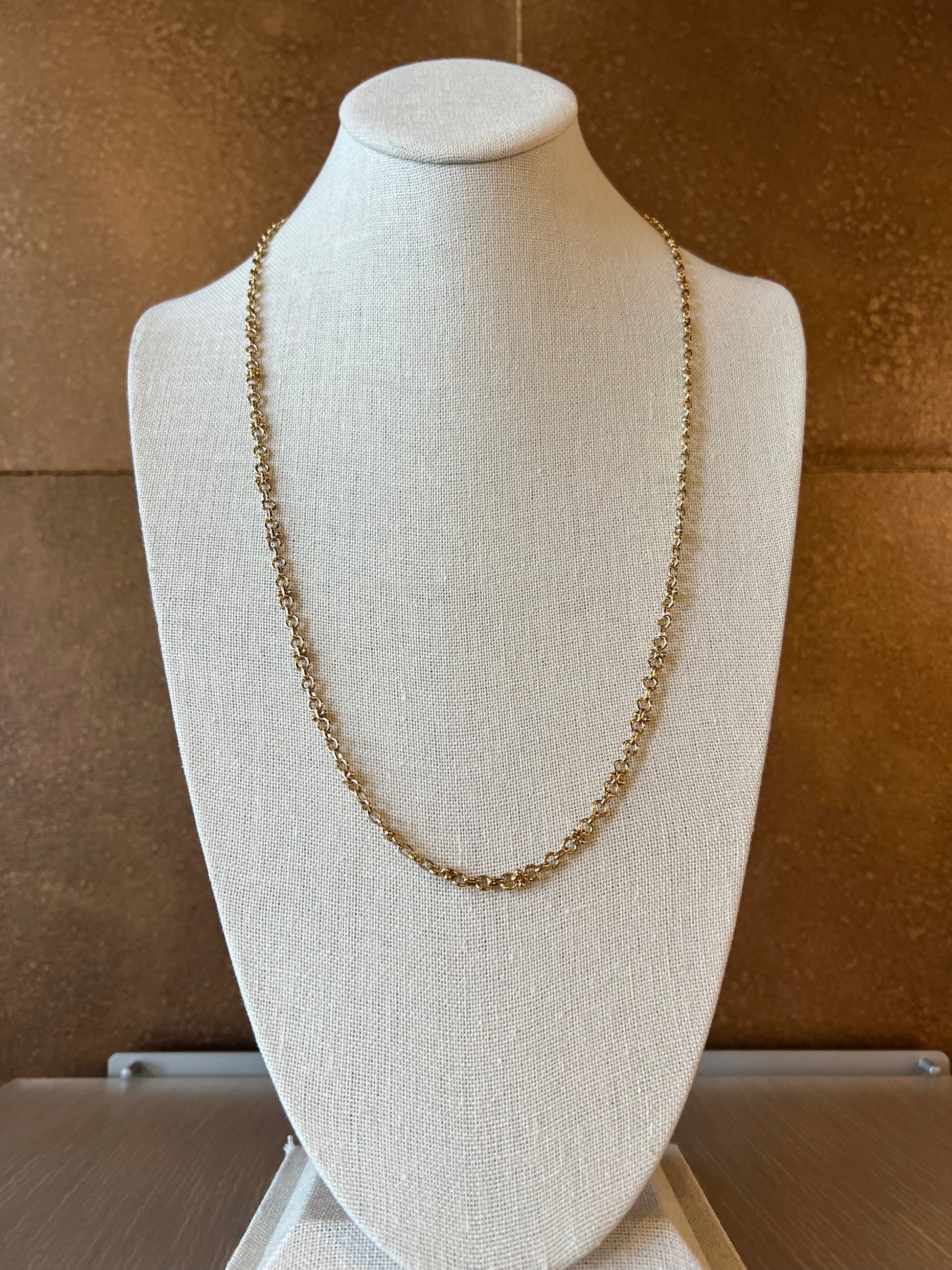 Gold Cyprus Chain Necklace crafted from Italian 24k gold-plated metal in a classic Cyprus link design known for its timeless elegance and fluid drape. The polished finish highlights each interlocking link, creating a luxurious statement piece that complements any neckline.