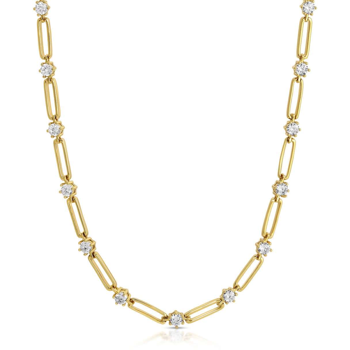 Add a touch of elegance to any look with this sparkling link necklace. Crafted with alternating cz stones, it brings a hint of luxury to your everyday style.