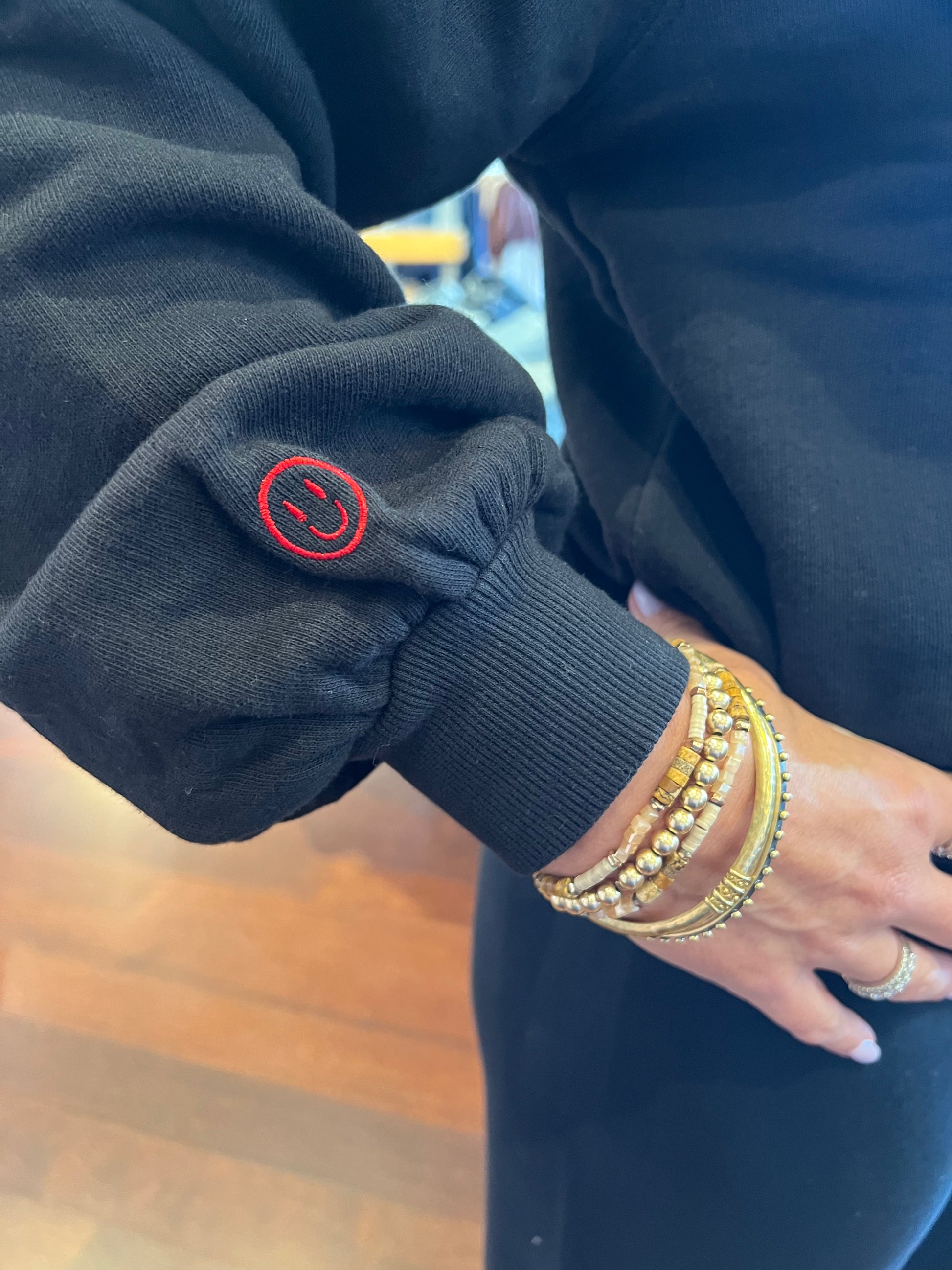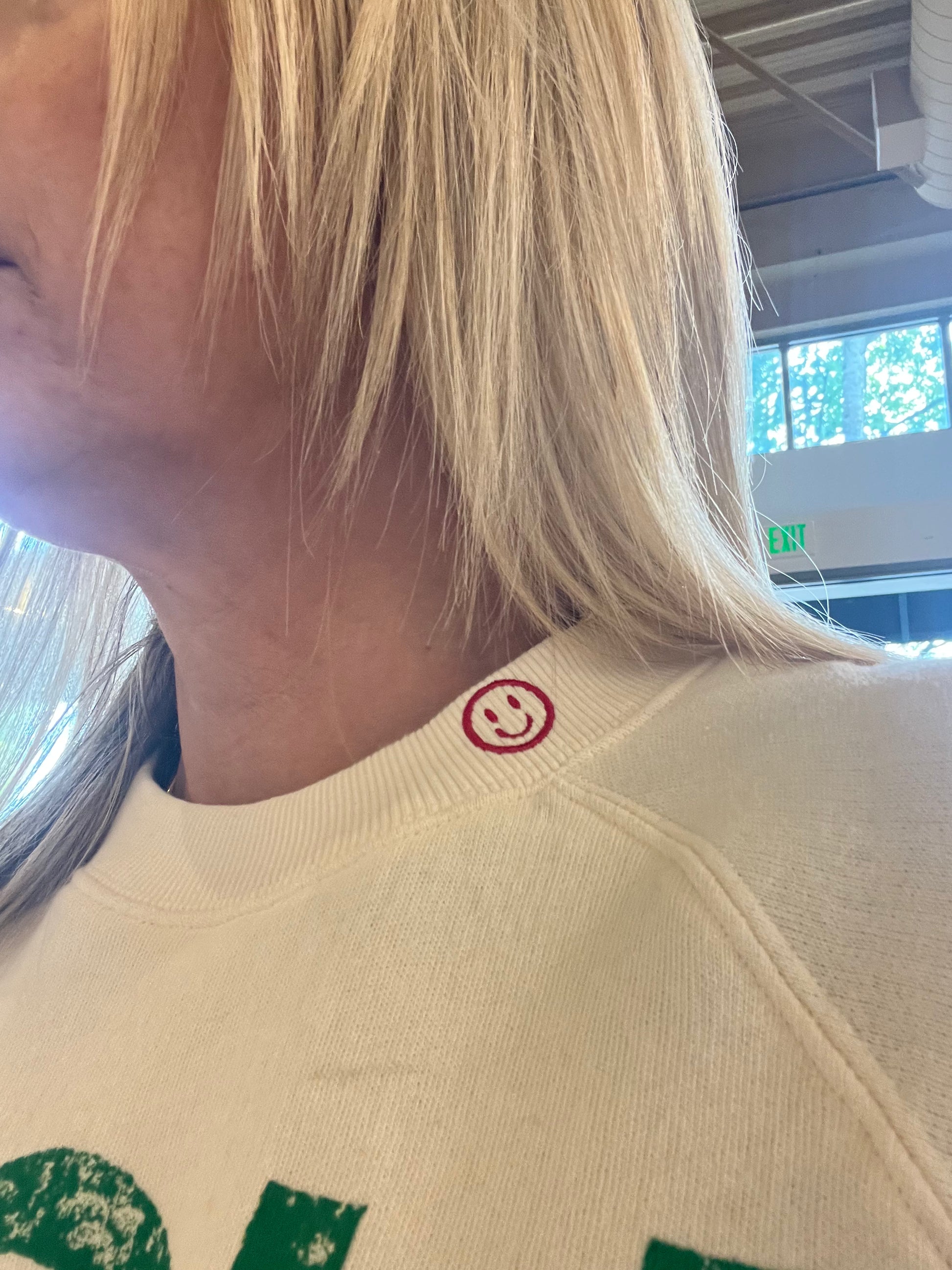 Game day or any day, this cozy graphic crewneck is a win. Choose Black Football with chenille appliqué or Ivory Golf with a bold green print. Easy to throw on with denim or joggers for a sporty cute look.